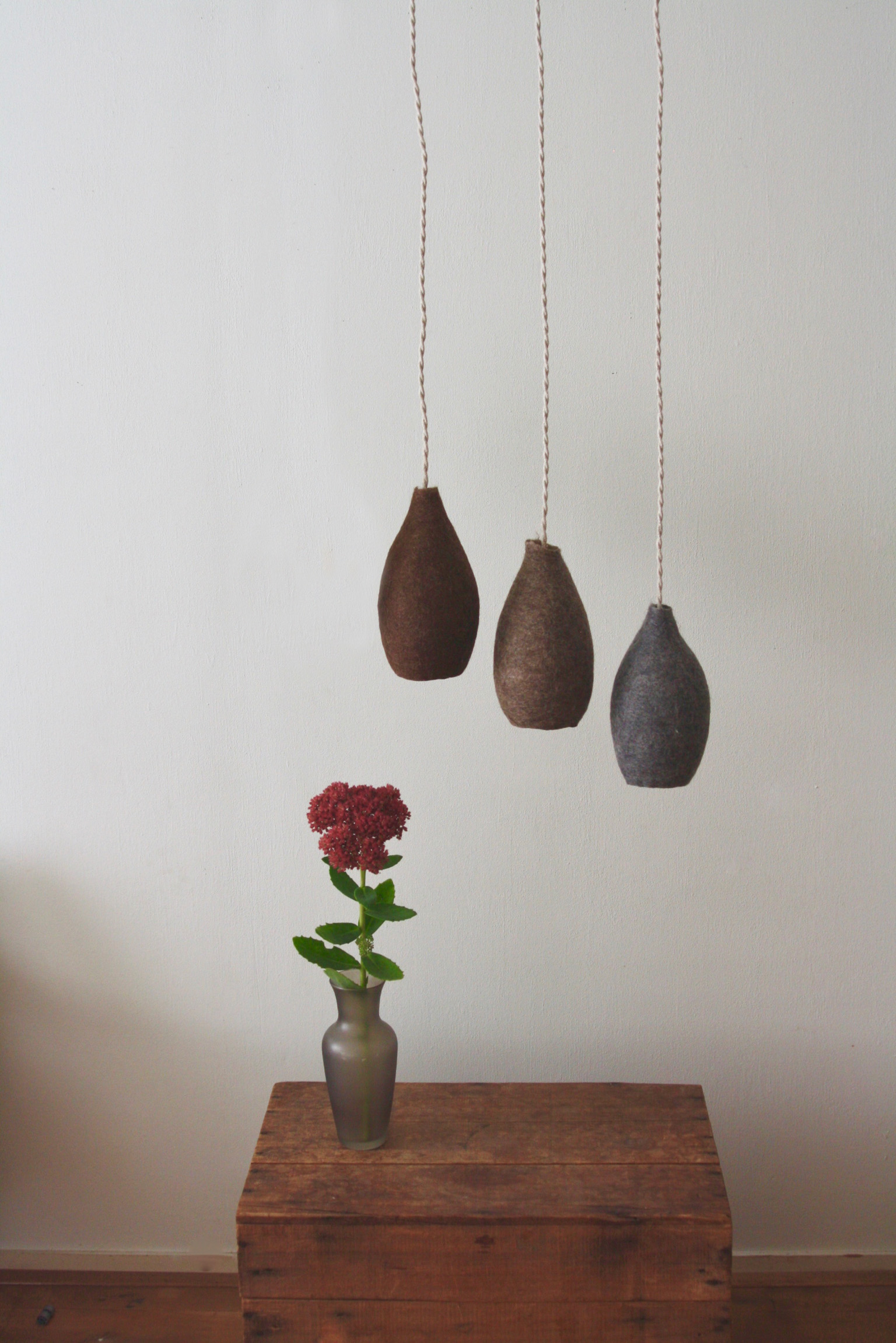 De levertijd van onze lampen is 4-8 weken. Het proces van handmatig vilten, verven, vormen van de lamp én drogen kost tijd. Maar dan heb je wel een uniek handgemaakt product!